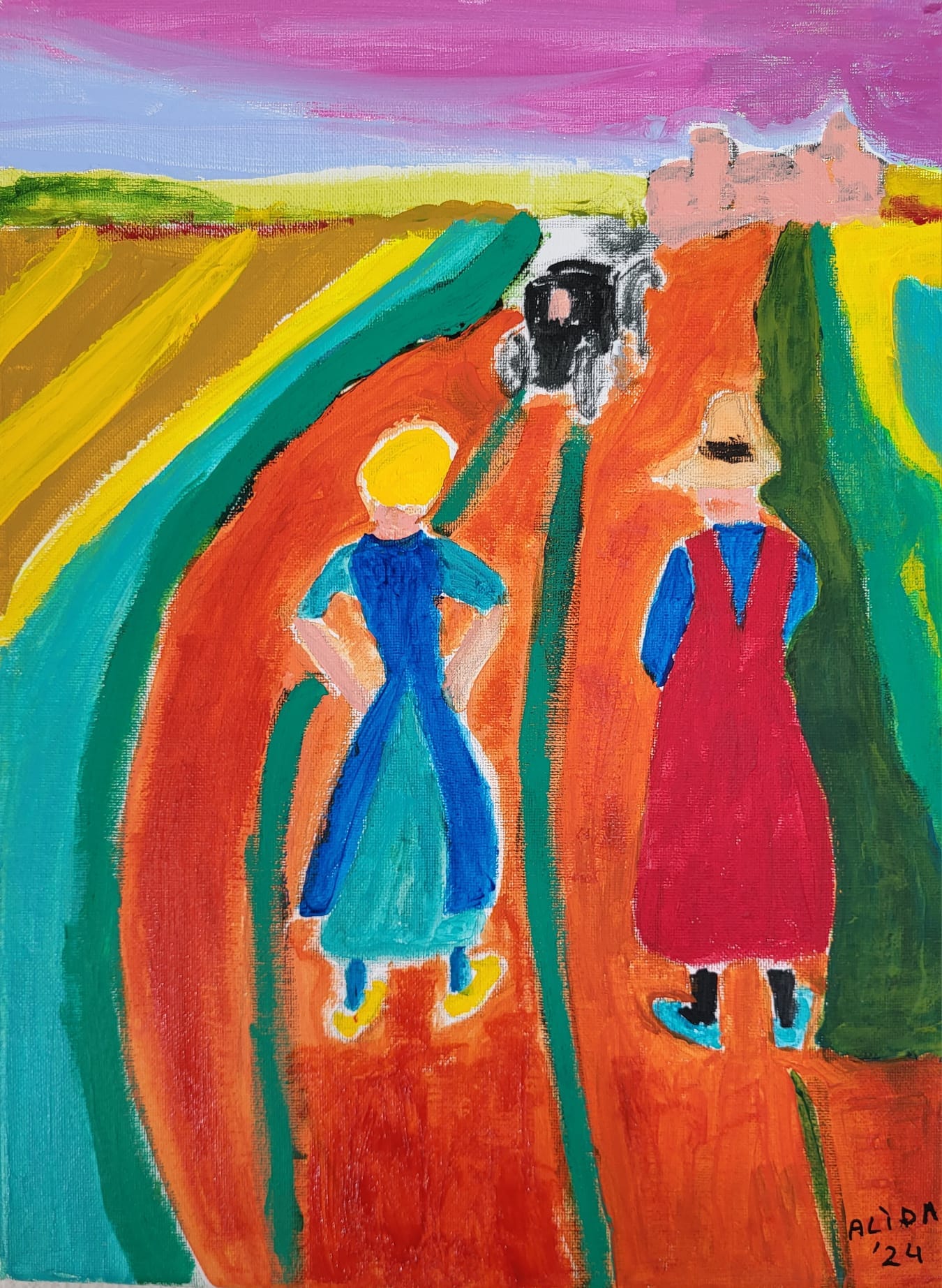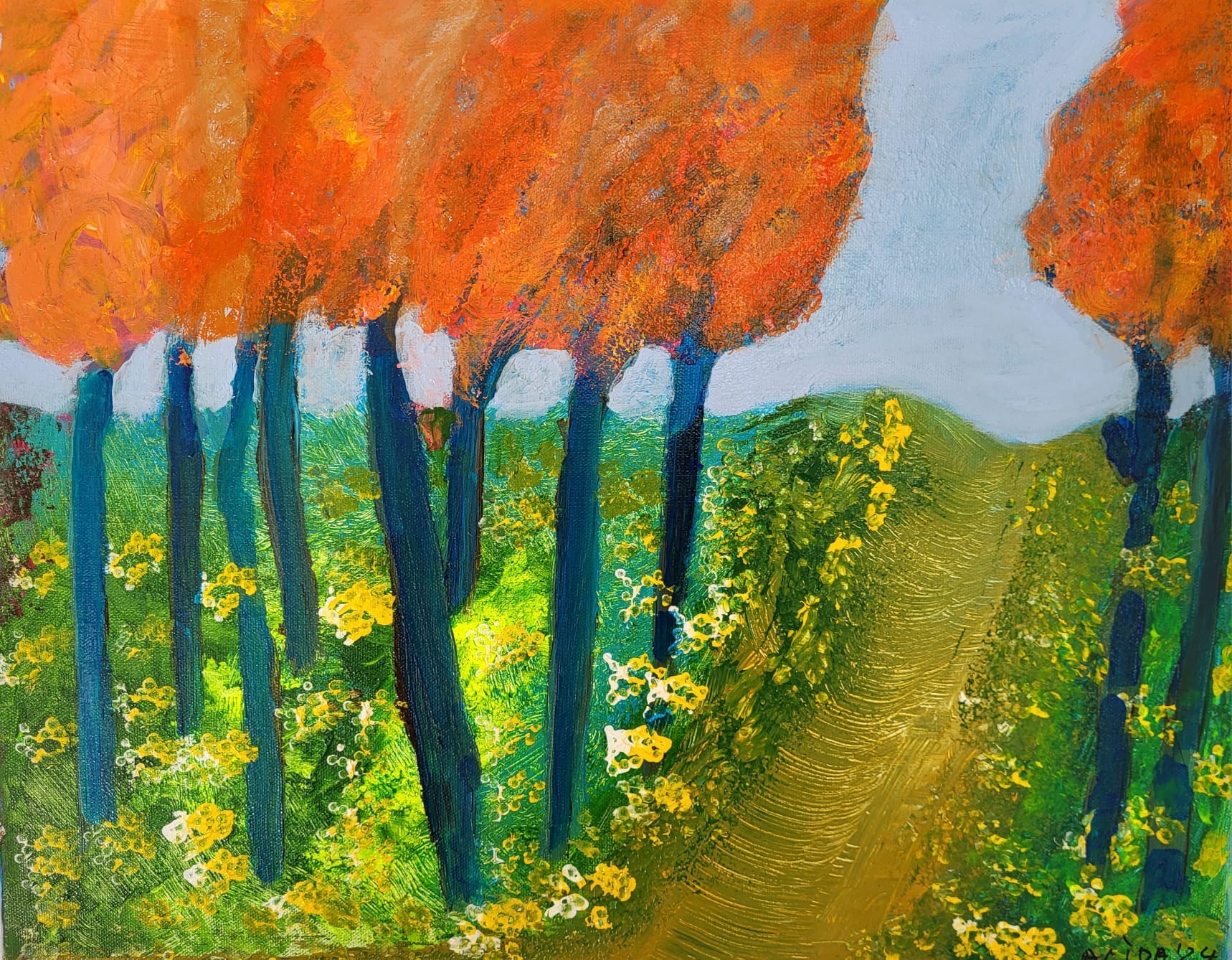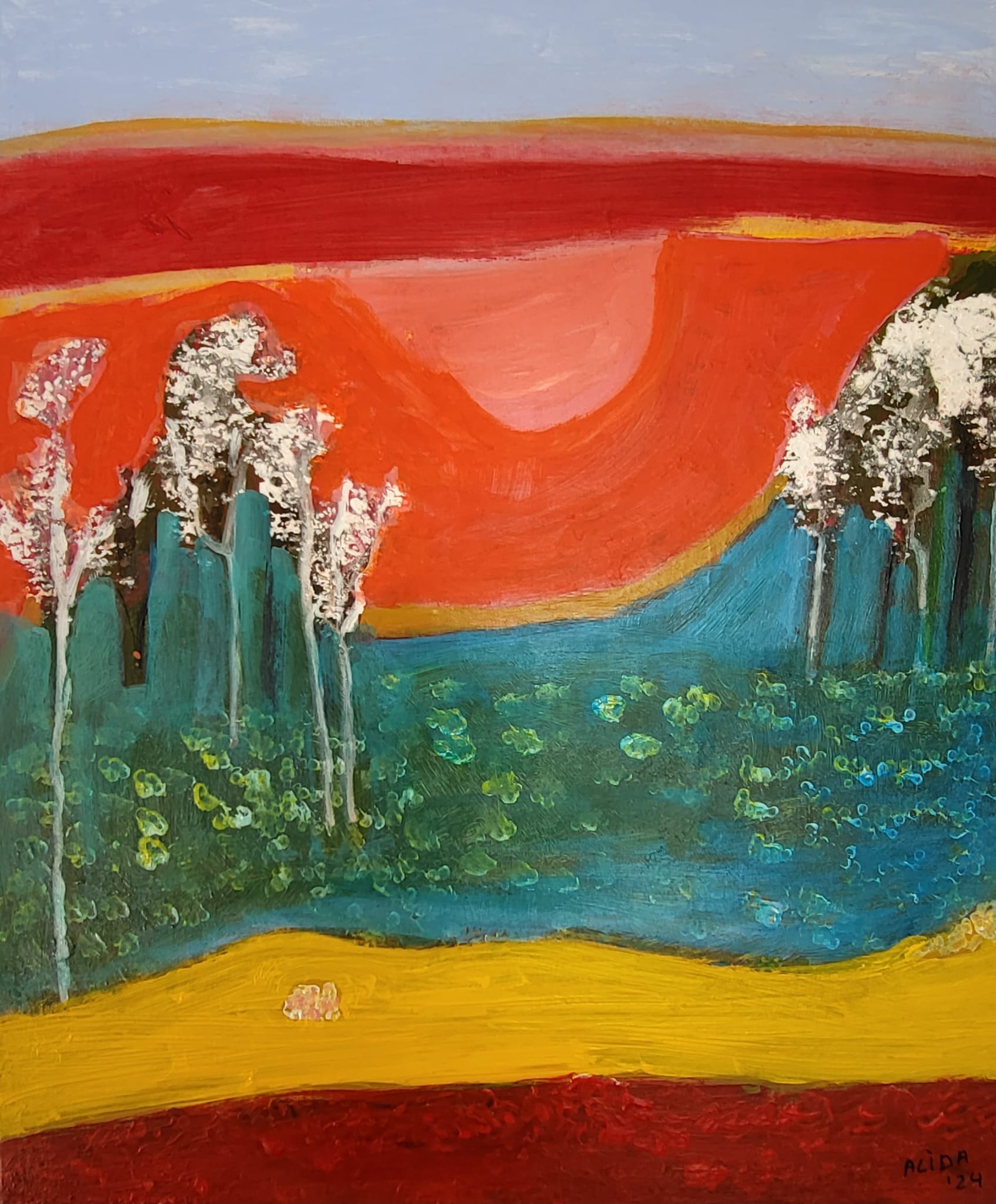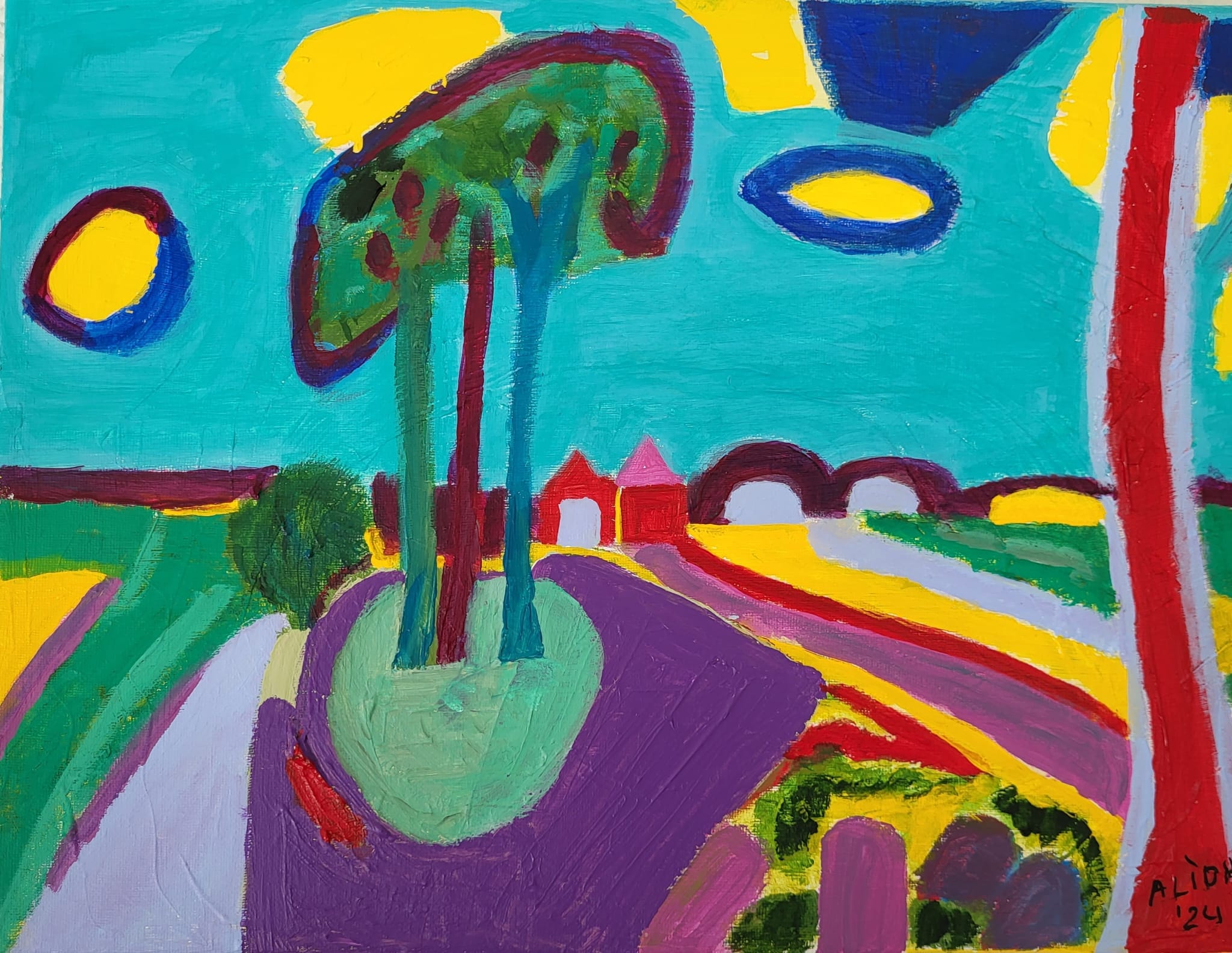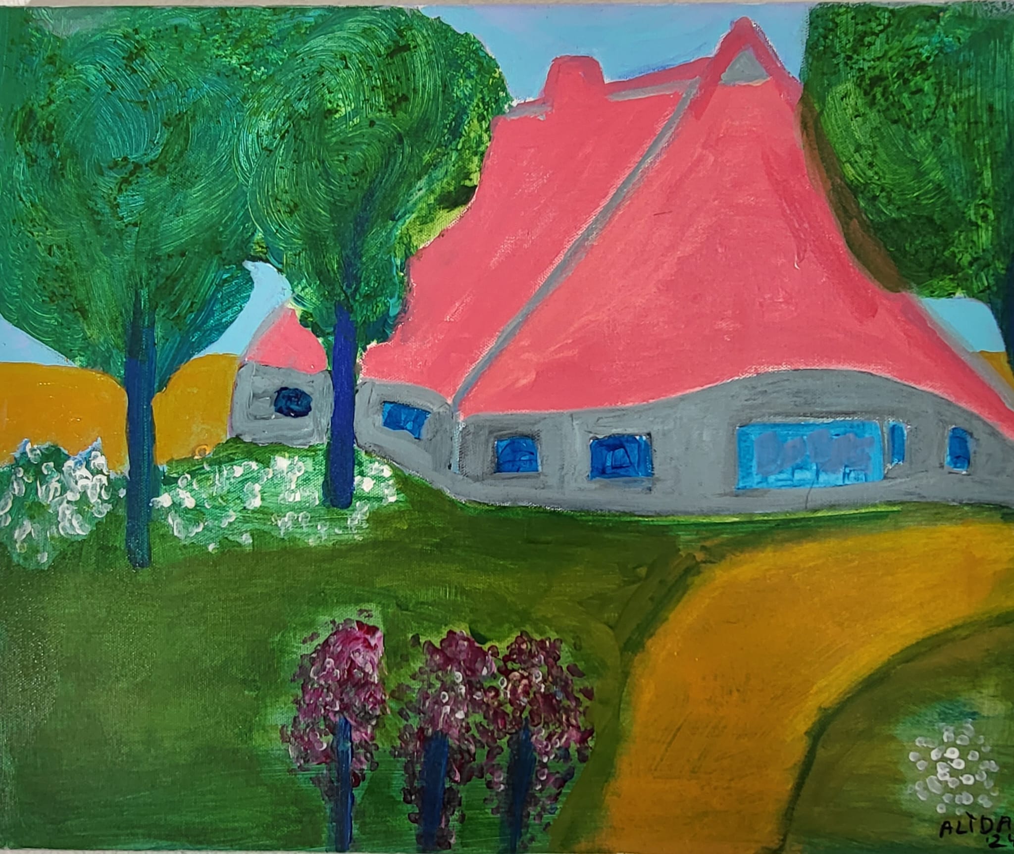 Tegen mijn 50ste ging ik schilderen op een intuïtieve manier met felle kleuren in acrylverf en vaak op grote doeken.